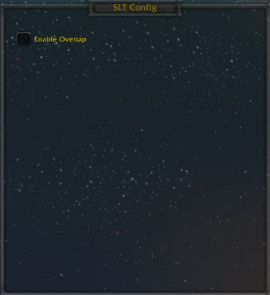 | Toggle SLT Config | /run if not ScaledLifeTapForm:IsShown() then ShowUIPanel(ScaledLifeTapForm) else HideUIPanel(ScaledLifeTapForm) end