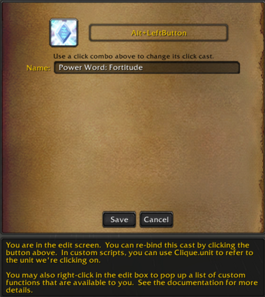 • Scripts can refer to Clique.unit (the current target or unit you clicked).