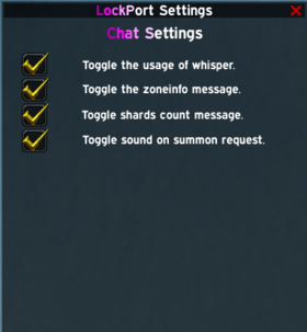- /lockport whisper - Enables or Disables whispering the target when summoning.