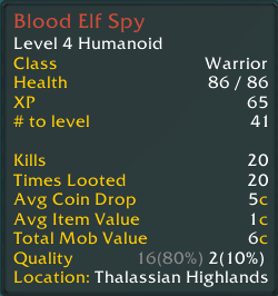 • Total Looted (Number of times you have looted the mob)